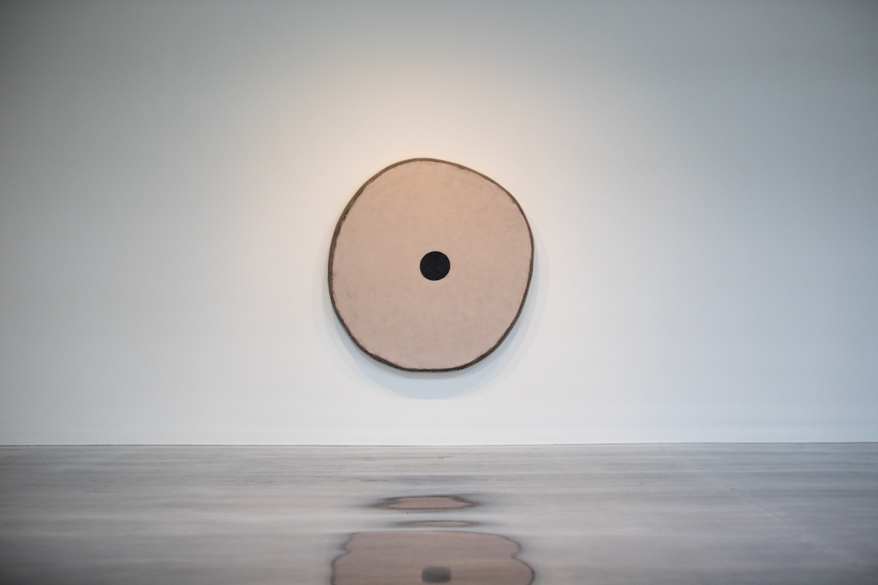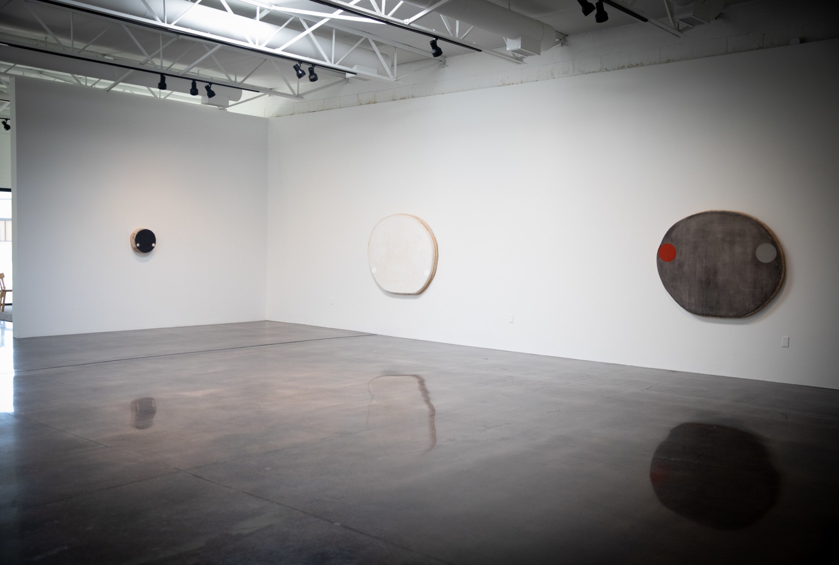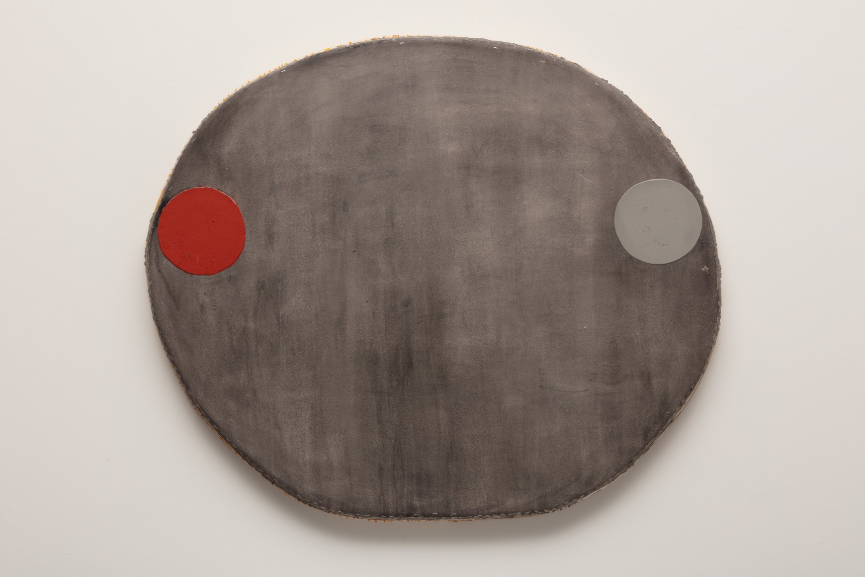Red Oxide and Gray Circles on Blask Wash, 2020