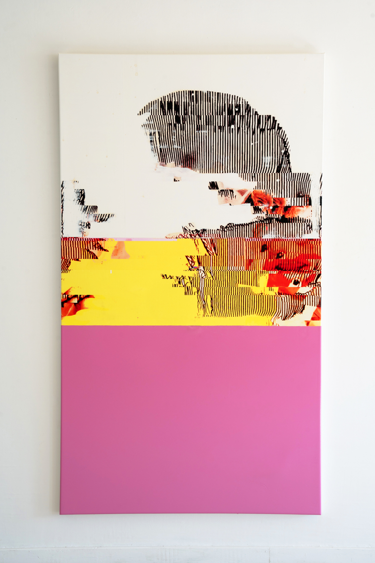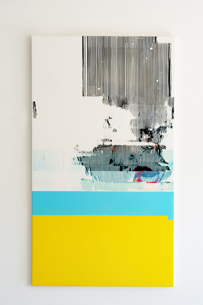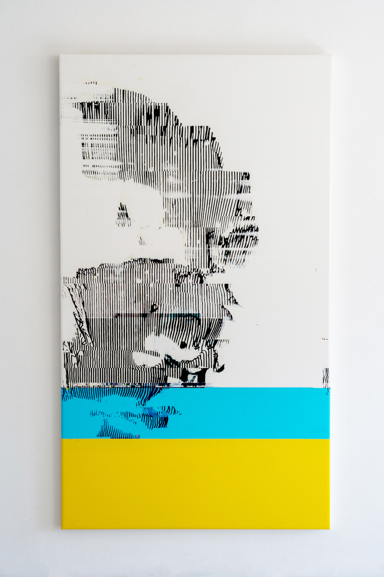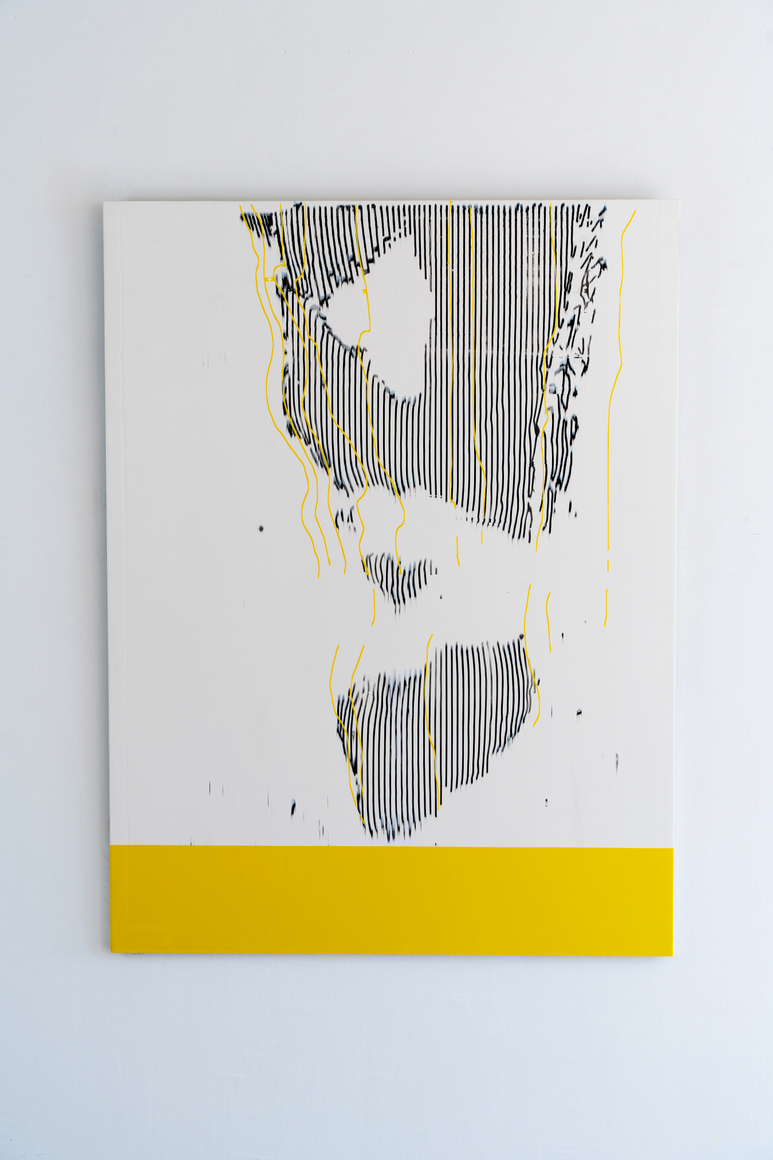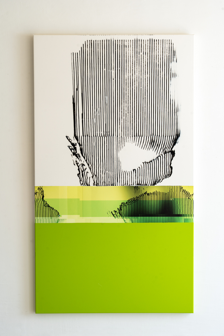 Oil enamel, UV pigment ink and polyurethane on canvas