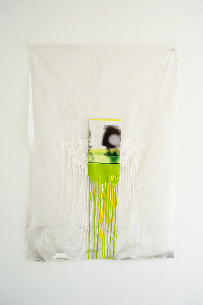 Oil enamel, UV pigment ink on canvas on plastic sheeting