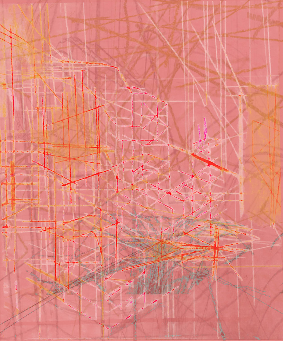 Archival pigment print of digitally manipulated drypoint layers on Hahnemühle Photo Rag 308 gsm